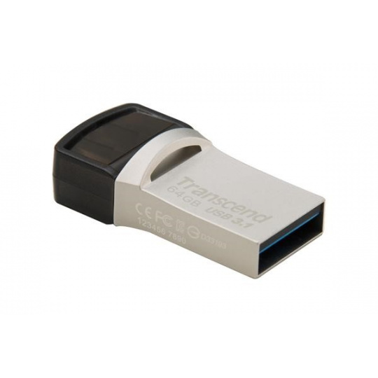 TRANSCEND Flash Disk 64GB JetFlash®890S OTG, USB 3.1 Type-C/A (R:90/W:30 MB/s) stříbrná