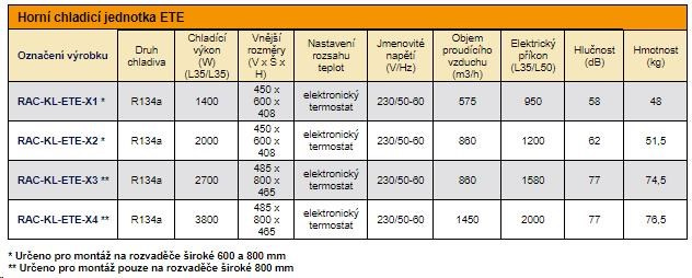 Horní chladicí jednotka ETE. Speciálně navržená pro montáž na horní stranu stojanového rozvaděče.