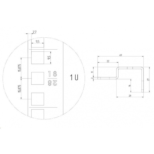 TRITON Vertikální lišta 27U, cena za 1ks