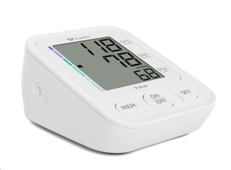 Tlakoměr Truelife Pulse využívá oscilometrickou metodu měření tlaku a funguje na principu nafouknutí manžety, která zajišťuje maximální přesnost naměřených hodnot. Navíc jeho ovládání je velmi jednoduché a vše podstatné zvládnete stiskem tlačítka START/STOP. Naměřené hodnoty zobrazuje velký a dobře čitelný třířádkový displej.