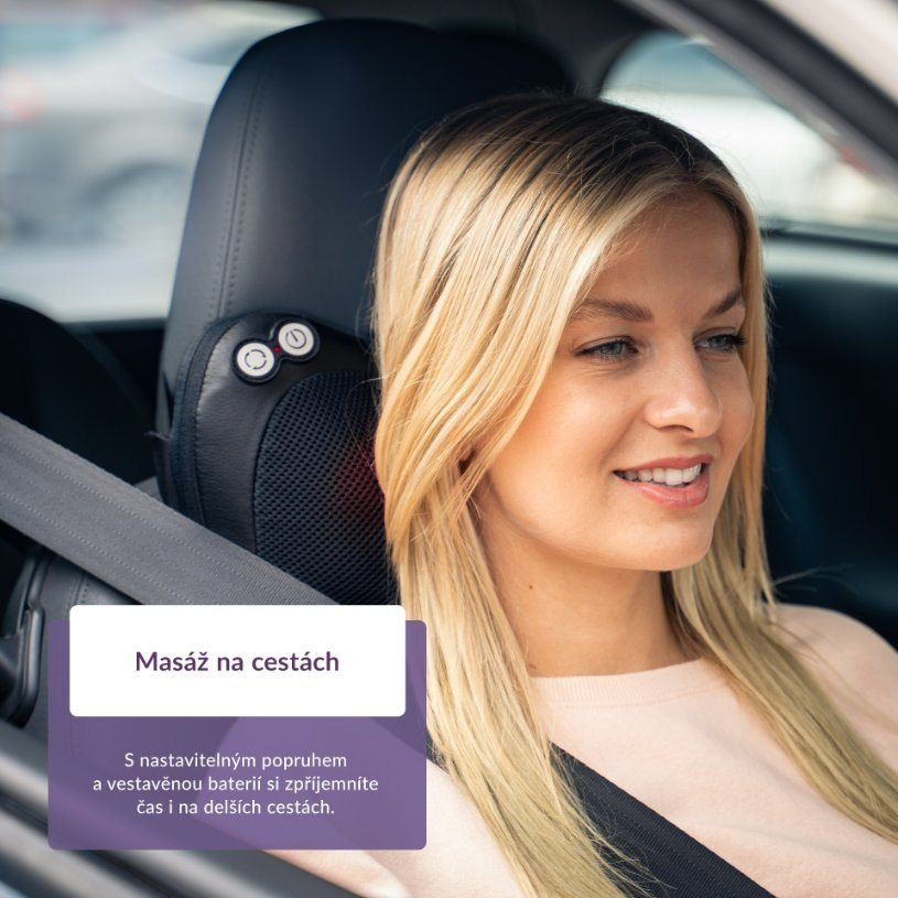Dnešní doba je hodně stresující a našemu zdraví neprospívají ani sedavá zaměstnání. Je tedy dobré mít po ruce pomocníka, který napomáhá zmírňovat bolesti zad a šíje, regenerovat svaly a snižovat svalové napětí a stres. Je jím masážní polštář RelaxBack B3 Charge s funkcí vyhřívání. Dvě rotační hlavice se čtyřmi nahřívacími hloubkovými masážními uzly napodobují tlakové a hnětací pohyby masáže Shiatsu. Zvolit lze ze 3 úrovní rychlosti, kdy každou minutu dochází k automatické změně směru otáčení. Časovač je nastaven na 15 minut masáže a vestavěná baterie vydrží na jedno nabití až 2 hodiny činnosti. Následné dobití probíhá pomocí USB-C kabelu. Polštářek je možné jednoduše přichytit nastavitelným popruhem k židli a praktický je rovněž návlek na nohy pro masáž chodidel. Ovládání přístroje je snadné, každá z funkcí má své tlačítko. Ani údržba masážního polštáře není vůbec složitá, povlak ze syntetické kůže a prodyšné síťoviny šetrné k pokožce stačí otřít navlhčeným hadříkem.