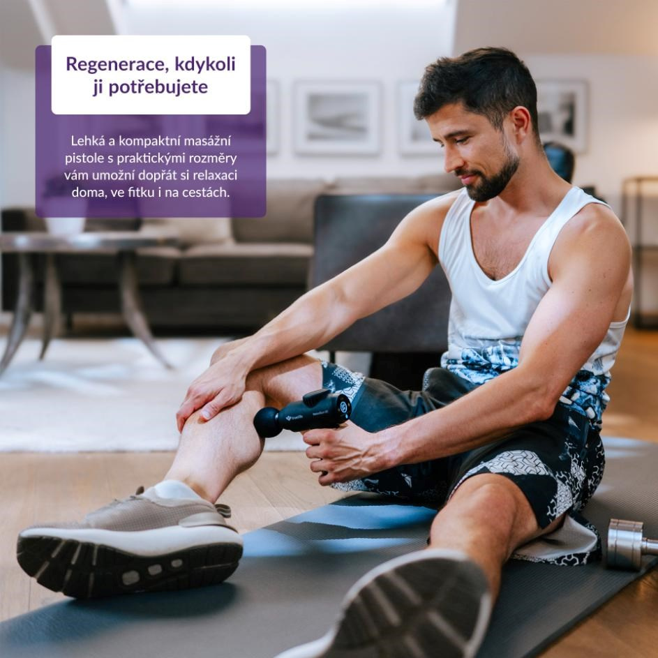 Ať už sportujete na vrcholové úrovni, pracujete jako fyzioterapeut, trávíte většinu dne u počítače, nebo jen hledáte efektivní způsob, jak ulevit unaveným svalům, masážní pistole TrueLife RelaxGun G1 je ideální volbou pro regeneraci i relaxaci. Nabízí 30 úrovní intenzity, přítlak 6 kg a frekvenci až 3200 kmitů za minutu, takže se snadno přizpůsobí vašim potřebám – od jemné relaxační masáže až po intenzivní hloubkovou terapii. Čtyři vyměnitelné silikonové hlavice umožňují cílenou péči o různé části těla, zatímco inteligentní funkce jako automatický frekvenční přítlak a bezpečnostní zastavení (Safety stop) zajistí maximální komfort a bezpečí. S tichým provozem, dlouhou výdrží baterie až 3 hodiny a moderním USB-C nabíjením je TrueLife RelaxGun G1 ideálním pomocníkem doma, ve fitku, v práci i na cestách. Dopřejte si péči kdykoliv potřebujete – pro rychlou regeneraci, úlevu od bolesti, prevenci zranění i podporu celkové pohody.