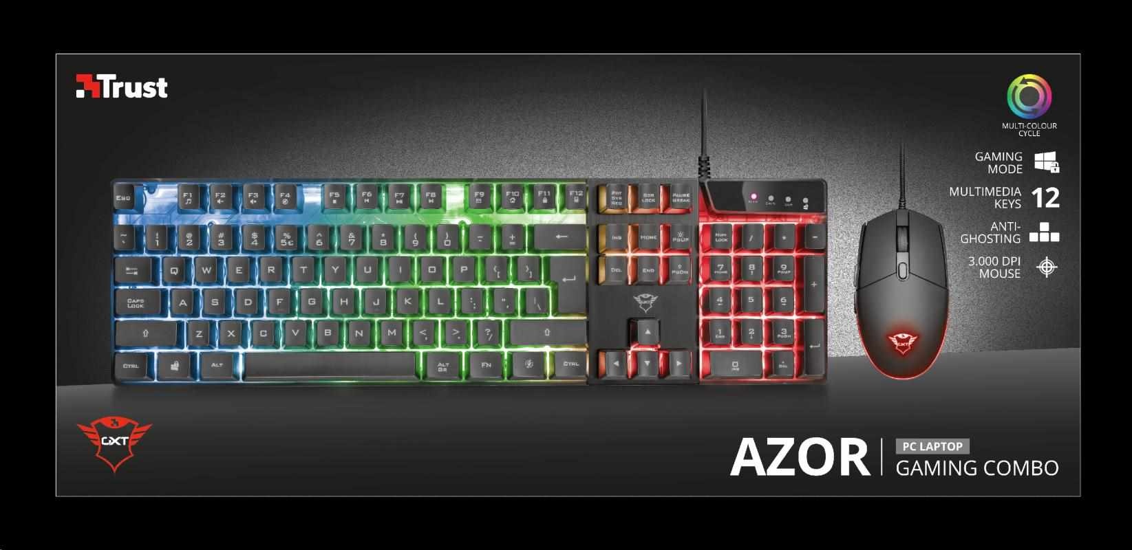 TRUST set klávesnice + myš GXT 838 Azor Gaming Combo US
