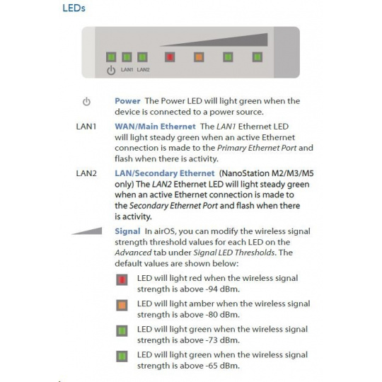 Nanostation M2 disponuje proti verzi "locoM2" dvěma ethernet.porty a výkonnější anténou se ziskem 11dBi. Můžeme tak k jednotce například připojit IP kameru. Díky možnosti distribuce PoE napájení i na tento port není nutné instalovat dva samostatné PoE adaptéry. PoE na druhém portu lze softwarově vypínat/zapínat, lze tak případně vzdáleně restartovat připojené zařízení. PoE adaptér disponuje "RESET" tlačítkem pro uvedení jednotky do továrního nastavení případně TFTP režimu pro obnovu poškozeného firmware.