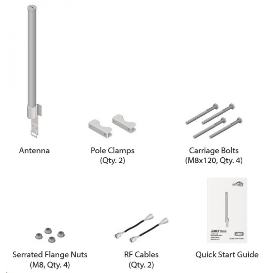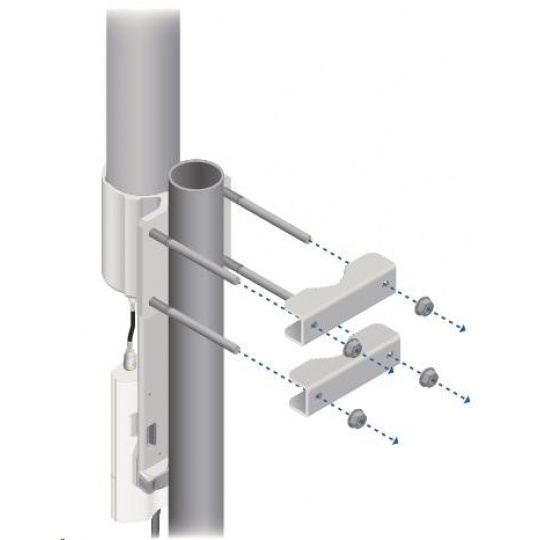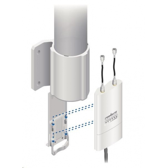 Jedná se o robusní řešení 13dbi všesměrové antény pro přístupové body pracující v pásmu 2.4GHz a využívajících standardu 802.11n v kombinaci s technologií MIMO. Anténa disponuje dvěma RSMA-female konektory. Součástí dodávky jsou dva voděodolné RSMA pigtaily pro propojení s jednotkou Rocket M2, držák pro tuto jednotku a montážní sada na stožár, viz. obr.