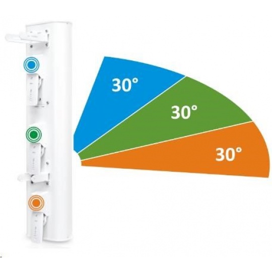 Jedná se o sektorovou anténu pro 3ks jakýchkoliv Rocket 5GHz jednotek. Vyzařovací úhel 3x 30° předurčuje tuto anténu zejména do zarušených oblastí a míst kde již není na stožáru příliš prostoru pro úmístění třech samostatných antén. V kombinaci s třemi Rocket airPrism jednotkami vytvoříte přístupový bod s velmi vysokou propustností a stabilitou.