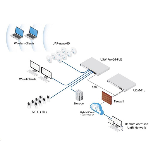 UniFi Dream Machine Pro od Ubiquiti Networks je all-in-one řešení sítě do menších a středně velkých firem. Jedná se o velmi výkonné zařízení o velikosti 1U do 19" racku a kombinuje tyto funkce: