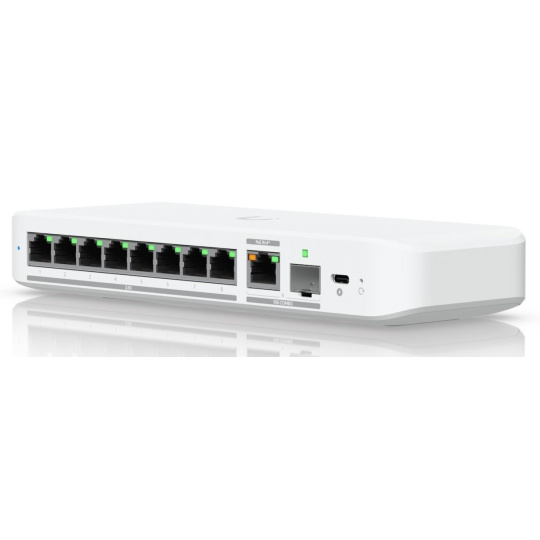 Popis produktu Ubiquiti UniFi Switch Flex 2.5G je kompaktní switch určený pro rozšíření sítě v domácích i kancelářských prostředích. Nabízí 8x 2.5Gbit porty, které umožňují snadnou integraci zařízení s vyššími přenosovými rychlostmi, jako jsou moderní přístupové body, servery nebo NAS úložiště. Switch podporuje správu prostřednictvím aplikace UniFi Network, což usnadňuje jeho konfiguraci a dohled nad sítí. Jednou z jeho klíčových funkcí je podpora napájení přes ethernet, což znamená, že zařízení lze napájet přímo přes síťový kabel pomocí PoE vstupu na prvním portu (802.3at / POE+), případně pak pomocí přiloženého USB-C adaptéru. Svým minimalistickým designem je ideální pro umístění na pracovním stole nebo třeba montáž na stěnu. Je plně kompatibilní se systémy UniFi a umožňuje snadné škálování podle potřeby. Obsah balení: Zařízení Napájecí adaptér USB-C (5V / 3A) Vrtací šablona Držák na zeď Montážní sada.