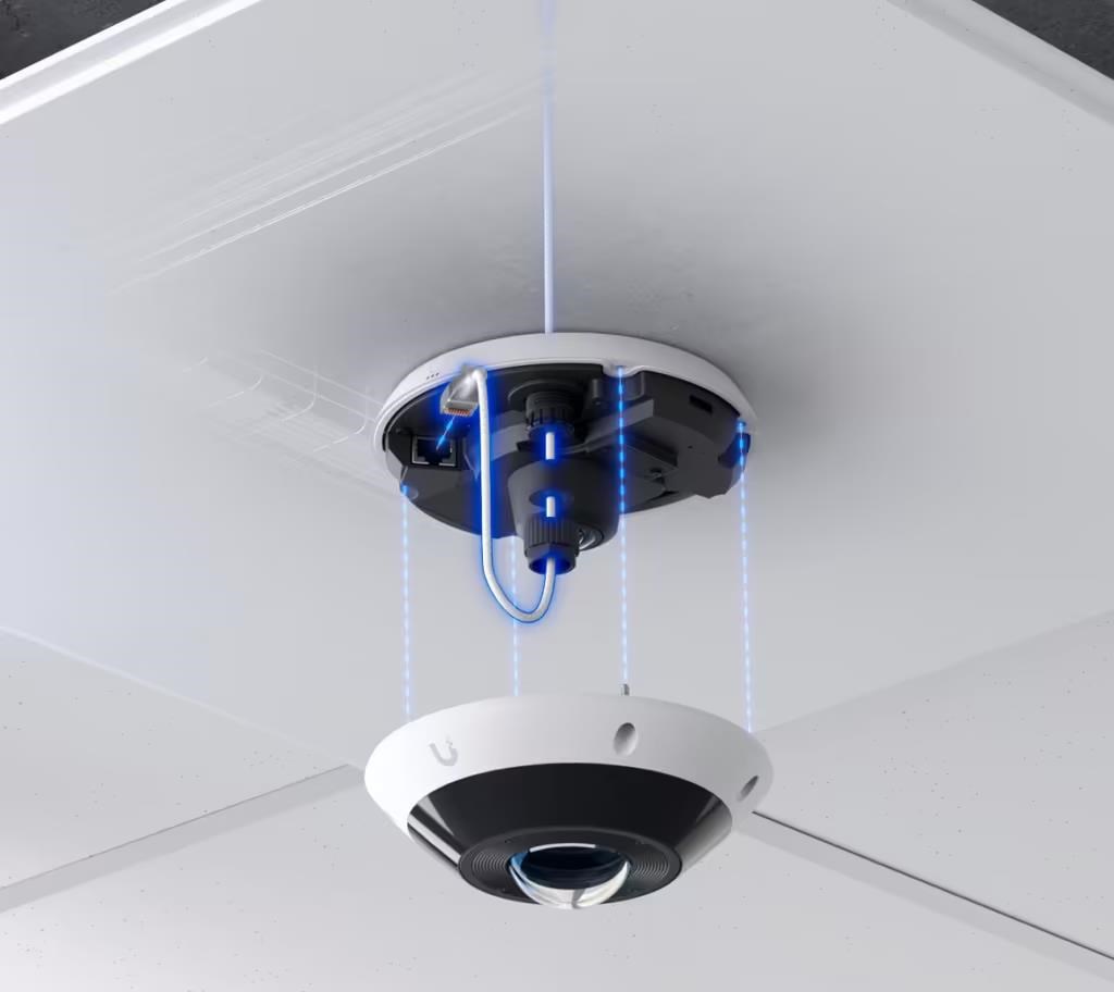 All-weather, vandal-resistant 12MP PoE camera with panoramic 360° coverage, digital pan-tilt-zoom functionality, and smart IR functionality..