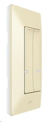 Valena Life with Netatmo dvojitý bezdrátový spínač osvětlení (baterie CR2032 a oboustranná lepenka součást balení) pro ovládání až 20 drátových přístrojů (spínačů/stmívačů, zásuvek, mobilních zásuvkových adaptérů, kabelových výstupů a mikromodulů pro osvětlení). Zadní strana je zcela plochá (lze montovat na zeď, sklo, nábytek pomocí šroubů nebo oboustranné lepenky) - barva Béžová, dodáván s rámečkem v barvě Béžová