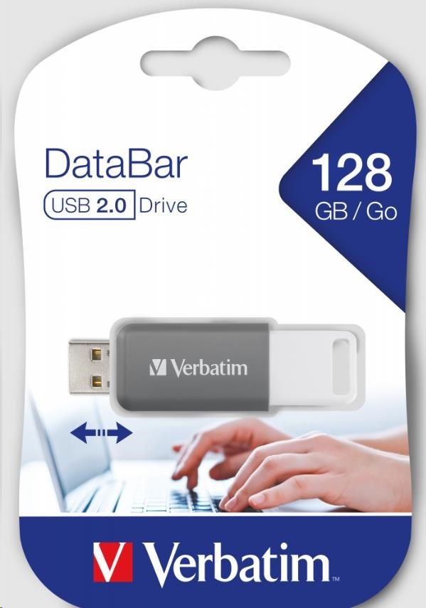 VERBATIM Flash Disk 128GB DataBar USB 2.0 Drive, šedá