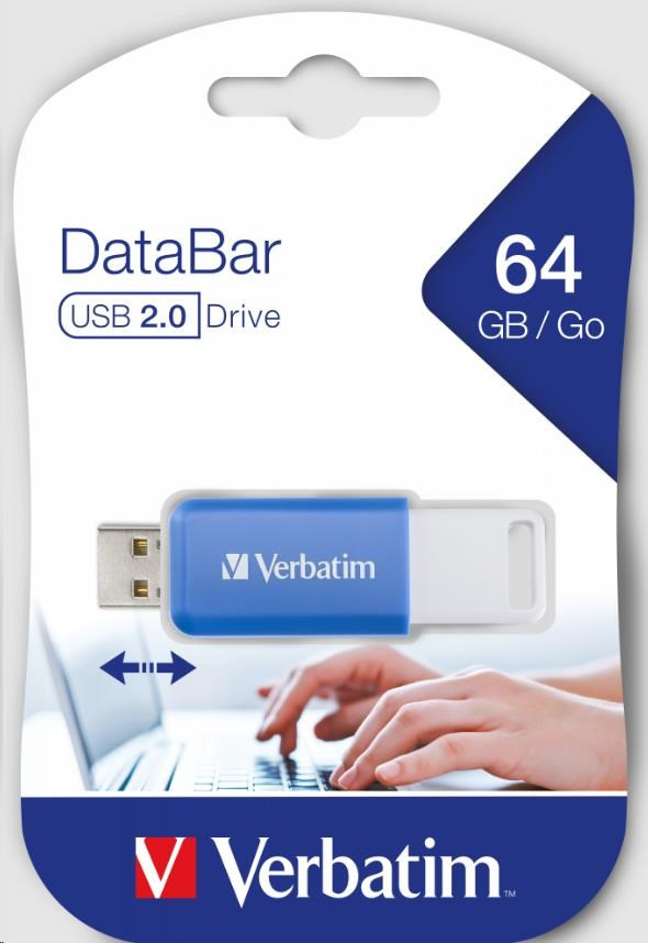 VERBATIM Flash Disk 64GB DataBar USB 2.0 Drive, modrá