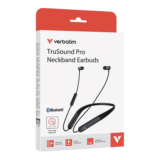 Sluchátka Verbatim TruSound Pro Neckband Earbuds jsou navržena pro dlouhé poslechové seance a díky výkonnému duálnímu bateriovému systému s kapacitou 900 mAh poskytují až 110 hodin přehrávání. Tato bezdrátová sluchátka Bluetooth 5.4 jsou ideální pro dojíždění, cestování nebo dlouhé pracovní dny a poskytují stabilní připojení a energeticky úsporný výkon. 10mm měniče poskytují čisté výšky, vyvážené středy a kontrolované basy v celém frekvenčním rozsahu 20 Hz–20 kHz.