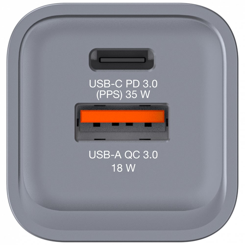 GaN nabíječka do sítě Verbatim o výkonu 35 W v elegantním designu, který se vejde do dlaně, kombinuje jeden port USB-C PD 35 W a jeden port USB-A QC 3.0. Ideální do kanceláře, pro domácí použití nebo na cesty, kde dodá energii vašemu tabletu, chytrému telefonu, herním a mnoha dalším zařízením.