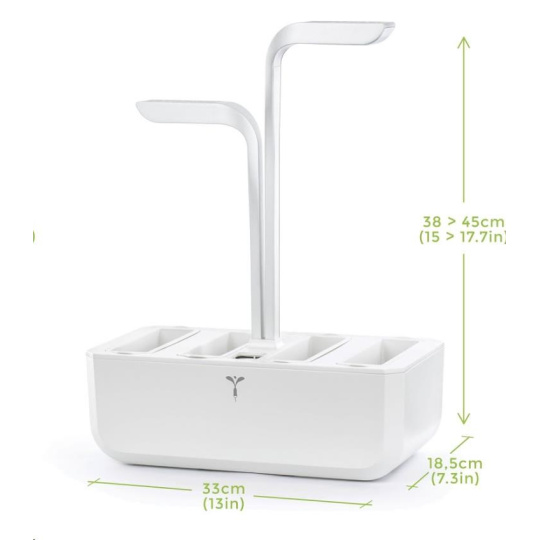 - Model Classic se hodí do prostorů bez přímého slunečního svitu – Sluneční svit kombinovaný s LED lampami by mohl způsobit spálení výhonků. Pro místa s přímým slunečním svitem doporučujeme model Smart s automatickou regulací LED svícení.