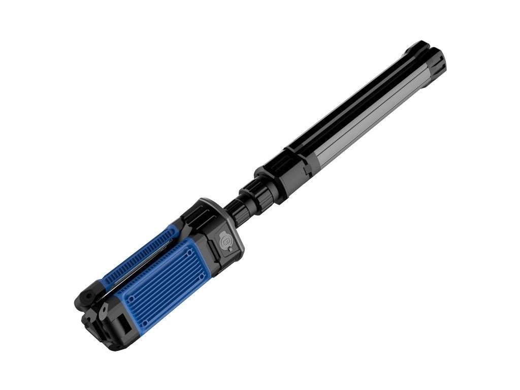 Snadno ho složíte i rozložíte, a pomocí vestavěného stativu ho lze nastavit až do výšky 1,7 metru. V nouzové situaci může fungovat jako powerbanka s výstupem USB-A.