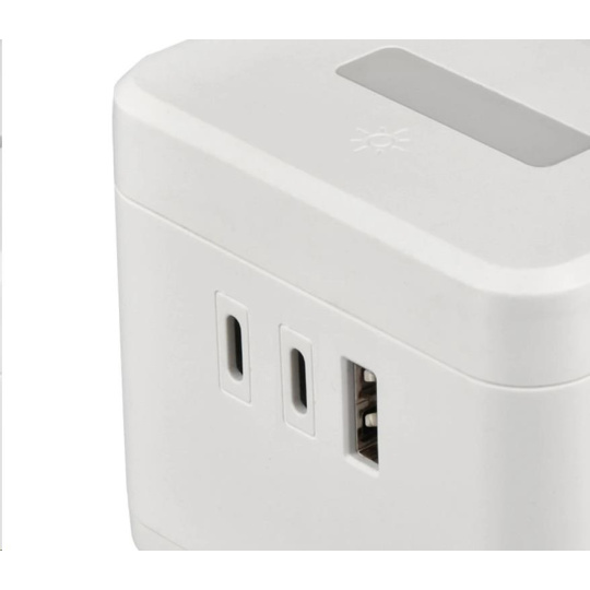 Viking síťový adaptér YC23H, 2x 230 V, 1x USB-A, 2x USB-C, dotykové světlo, funkce stojánku, bílá