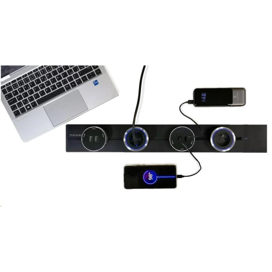 - Bezpečný a robustní design: Zásuvková lišta je vyrobena z odolné hliníkové slitiny, která zajišťuje dlouhou životnost a ochranu proti přehřátí. Těsnicí pásek chrání proti prachu a náhodnému dotyku, což snižuje možnost úrazu elektrickým proudem.