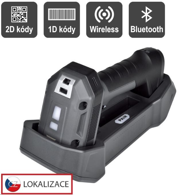 Virtuos CCD 2D průmyslová bezdrátová čtečka HW-857, USB, tmavě šedá