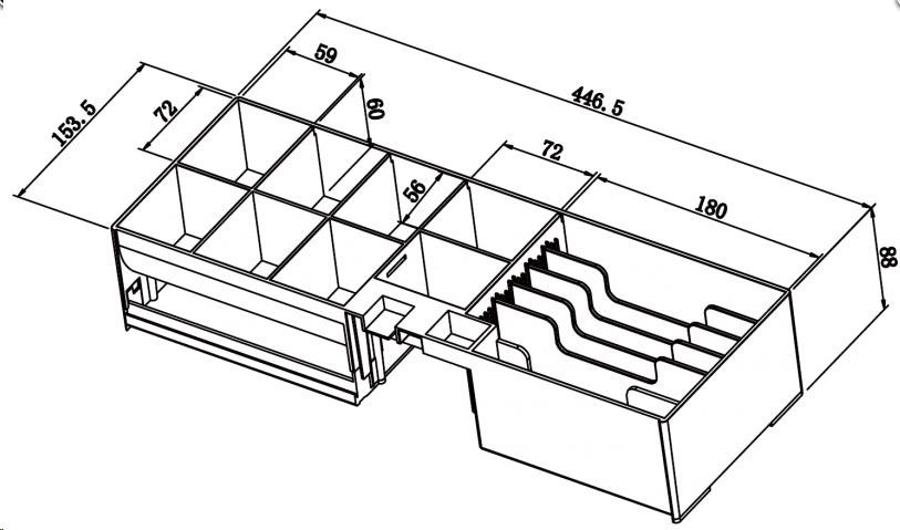 •Vyjímatelný pořadač na bankovky (nastavitelný) a mince