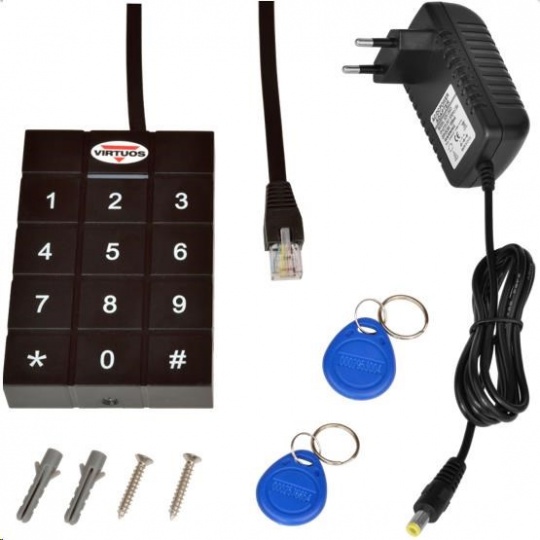 RFID 125 kHz adaptér Virtuos® je určen k otvírání pokladních zásuvek Virtuos pomocí RFID karet nebo zadáním PIN na klávesnici bez nutnosti použití pokladního systému. Adaptér dále může hlídat nezavřenou zásuvku a upozornit na tuto skutečnost spuštěním alarmu.