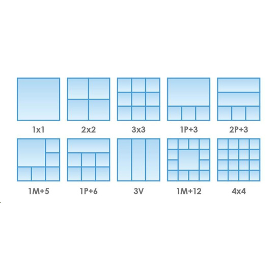 monitorovací zařízení pro zobrazení až 32 kamer (až 20Mpix kamera), 4K video výstup HDMI, H.265, dekódovací kapacita 3840x2160@90fps (3-CH) nebo 1920x1080@360fps (12-CH), USB