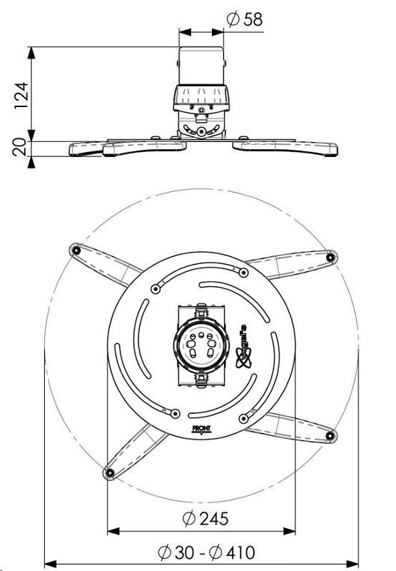 PPC 2500 Professional Stropní držák na větší projektor do 30 kg vyhovuje prakticky všem středním a větším projektorům do 30 kg možnost rotace a náklonu zabezpečí optimální promítací úhel jemné nastavení podélného a příčného náklonu aretace ve všech osách zajistí stabilitu nastaveného úhlu a odstraní případné vůle spec... více