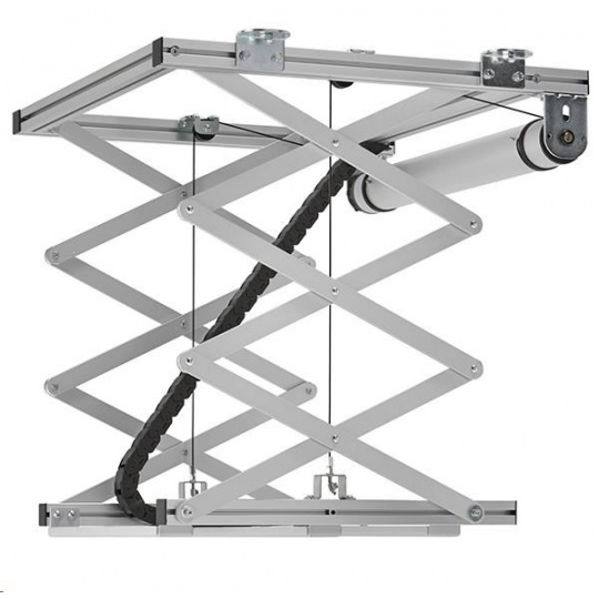 Výtah na projektor PPL2100 je perfektní řešení pro estetickou integraci větších a těžkých projektorů do stropu. Nejen že je projektor pěkně schován, ale je i zároveň lépe chráněn proti krádeži. Výtah pracuje velmi tiše a nabízí dvě nastavitelné pozice - výchozí a promítací.Výtah byl vyvinut pro instalaci do stropních podhledů, které poskytují velmi málo místa. V rámci podhledu je požadováno pouze 15,5 cm minimální výšky k instalaci výtahu a projektoru. Konstrukce umožňuje pokles až o 81,5 cm. Maximální nosnost výtahu je 30 kg.