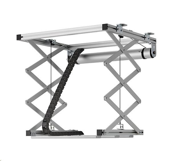 Výtah na projektor PPL2100 je perfektní řešení pro estetickou integraci větších a těžkých projektorů do stropu. Nejen že je projektor pěkně schován, ale je i zároveň lépe chráněn proti krádeži. Výtah pracuje velmi tiše a nabízí dvě nastavitelné pozice - výchozí a promítací.Výtah byl vyvinut pro instalaci do stropních podhledů, které poskytují velmi málo místa. V rámci podhledu je požadováno pouze 15,5 cm minimální výšky k instalaci výtahu a projektoru. Konstrukce umožňuje pokles až o 81,5 cm. Maximální nosnost výtahu je 30 kg.