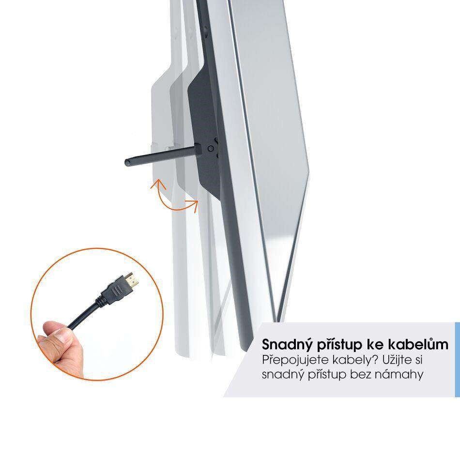 Nástěnný držák má speciální pozici pro údržbu, která umožňuje snadný přístup ke kabelům nebo USB portům po instalaci. Stačí spodní stranu TV odtáhnout od stěny. TV přitom zůstává stále bezpečně uzamčena na držáku.