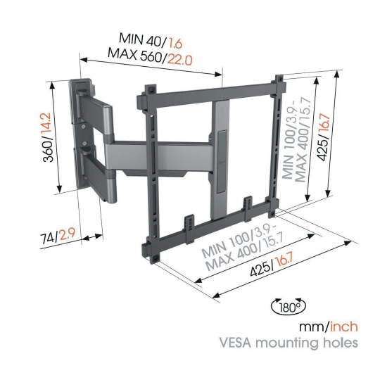 Extra tenký držák, TV 32-65", natáčení 180°, hloubka 35 mm, VESA do 400x400, 35 kg, bílé.