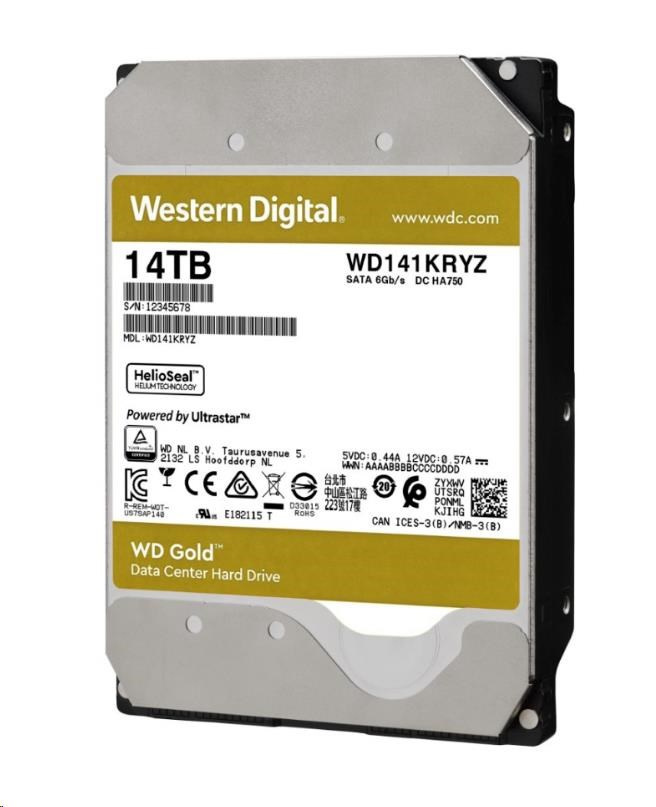 WD GOLD WD142KRYZ 14TB, SATA III 3.5", 512MB 7200RPM, 262MB/s, CMR, Enterprise