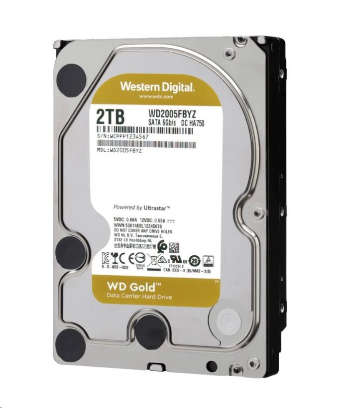 WD GOLD WD2000FRYZ 2TB, SATA III 3.5", 128MB 7200RPM, 200MB/s, CMR, Enterprise