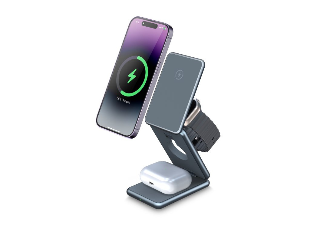 - Univerzální nabíjení 3v1: Nabíjejte současně svůj iPhone, Apple Watch, AirPods či jiné sluchátka s podporou bezdrátového nabíjení.