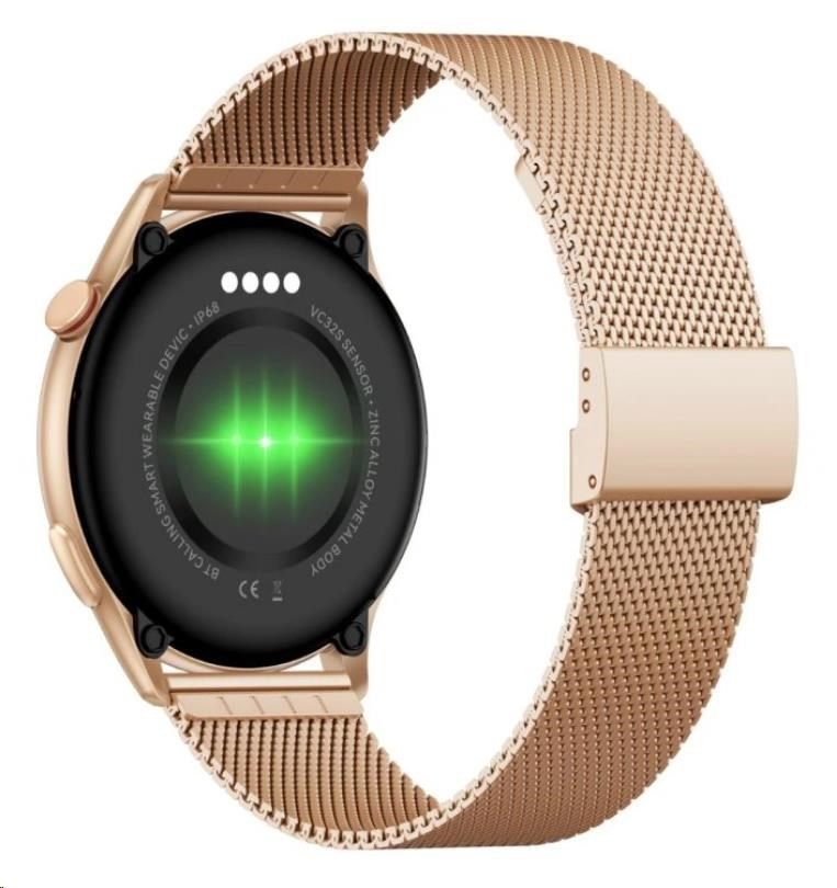 • Dva řemínky: Součástí balení jsou dva vyměnitelné řemínky, které vám umožňují měnit vzhled hodinek podle vašich potřeb, a to zlatý kovový nebo silikonový růžový.
