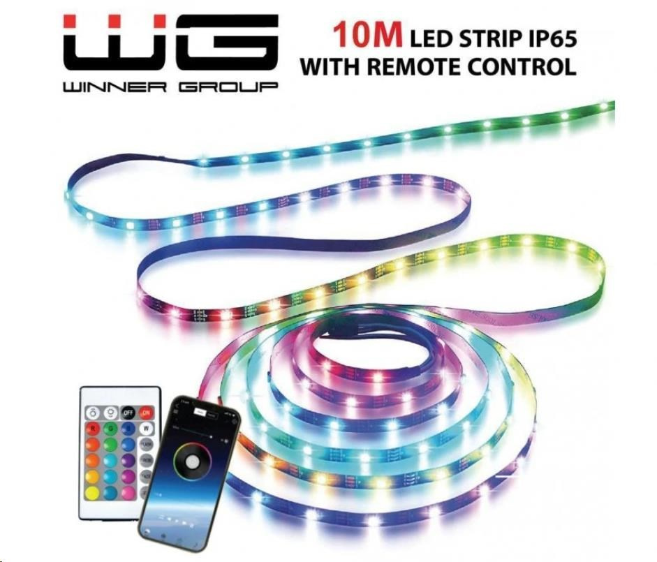WG - Chytrý LED pásek WG16, 10 metrů, s ovladačem i aplikaci, IP 65, se síťovým adaptérem