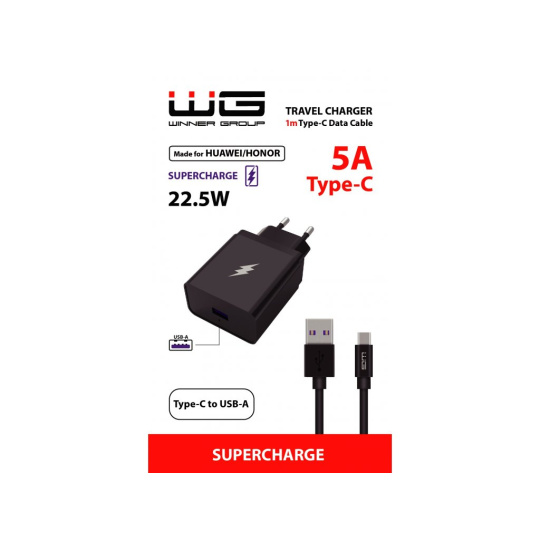 WG - Síťová nabíječka 1x USB-A 22,5W, SuperCharge, 5V-9V-12V, + kabel USB-A na Type-C (5A), černá