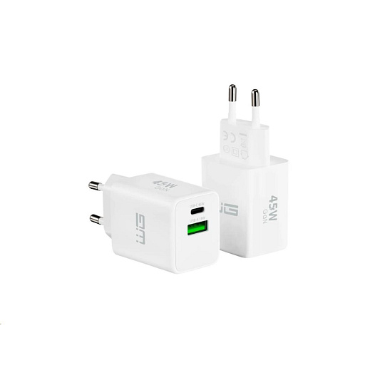 WG Síťová nabíječka GaN 2xUSB (A+C)/USB-C PD45W+USB-A QC3.0 18W/white