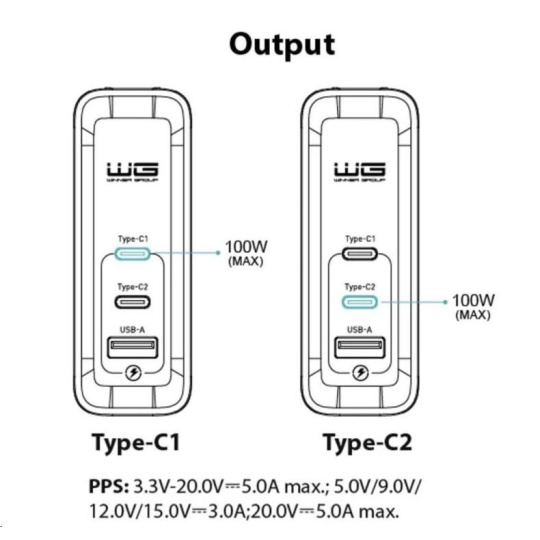 - USB-C1+USB-C2: 5V/9V/12V/15V/20V?3A max. (60W+60W)