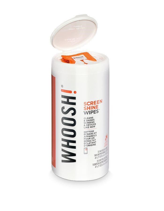 Mikrovláknová utěrka Whoosh! je tkaná z extra tenkého vlákna s antimikrobiální úpravou. Jemné smyčky W! tkaniny spolehlivě zachytí i mikroskopické nečistoty. V kombinaci s přípravky Screen Shine se Whoosh! postará o dokonalou hygienu vašeho mobilu, tabletu a dalších zařízení, kterých se denně dotýkáte. Podrobnější informace najdete zde.