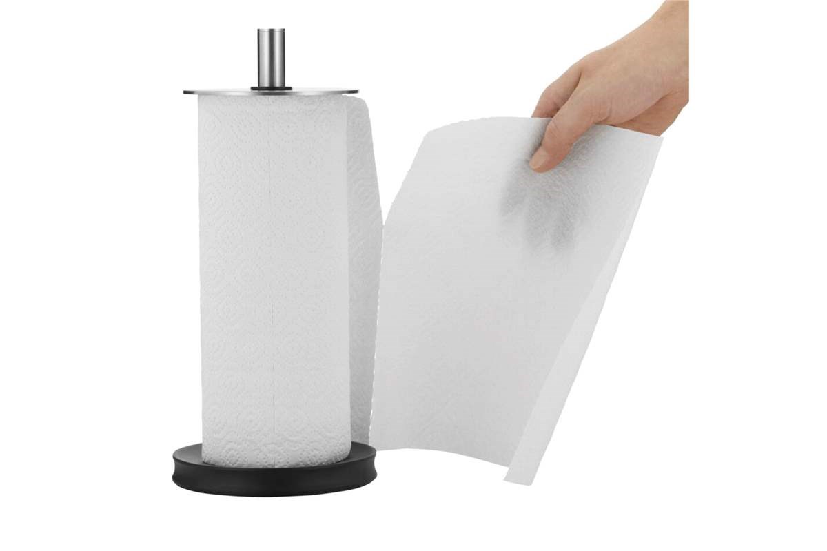- Stabilní základna: Široká a zatížená spodní část zajišťuje, že držák pevně stojí na pracovní desce i při odtrhávání utěrek jednou rukou.