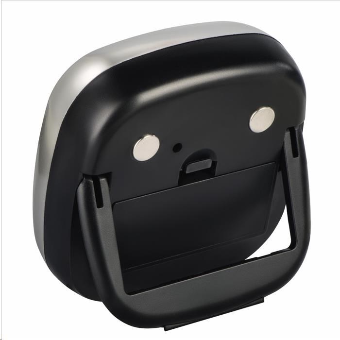 - digitální minutka se stylovým designem - nastavení času pomocí 3 dotykových tlačítek (až do 99 minut a 59 sekund) - funkce stopek a odpočítávání - tlačítko Start / Stop - hlasitý zvukový signál - velký 4-číslicový displej (XX: XX) - podsvícení - možnost postavení na vodorovnou plochu pomocí stojánku nebo připevnění na kovové magnetické povrchy pomocí magnetu - rozměry (V x D x Š): 7,2 x 7,2 x 2,4 cm - napájení: 2x Micro AAA (součást balení) - barva: černá/ stříbrná.