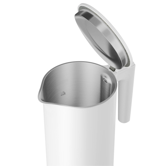 Konvice má zaoblený tvar pro ještě snažší čištění, bezproblémový provoz. Jednoduchá konstrukce bez spár a sítka, která nezanechává skvrny od vodního kamene a má velký průměr pro snadnější čištění.