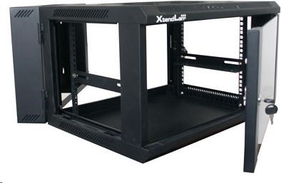 XtendLan 19" dvoudílný nástěnný rozvaděč 9U 600x550, nosnost 60 kg, skleněné dveře, svařovaný,černý