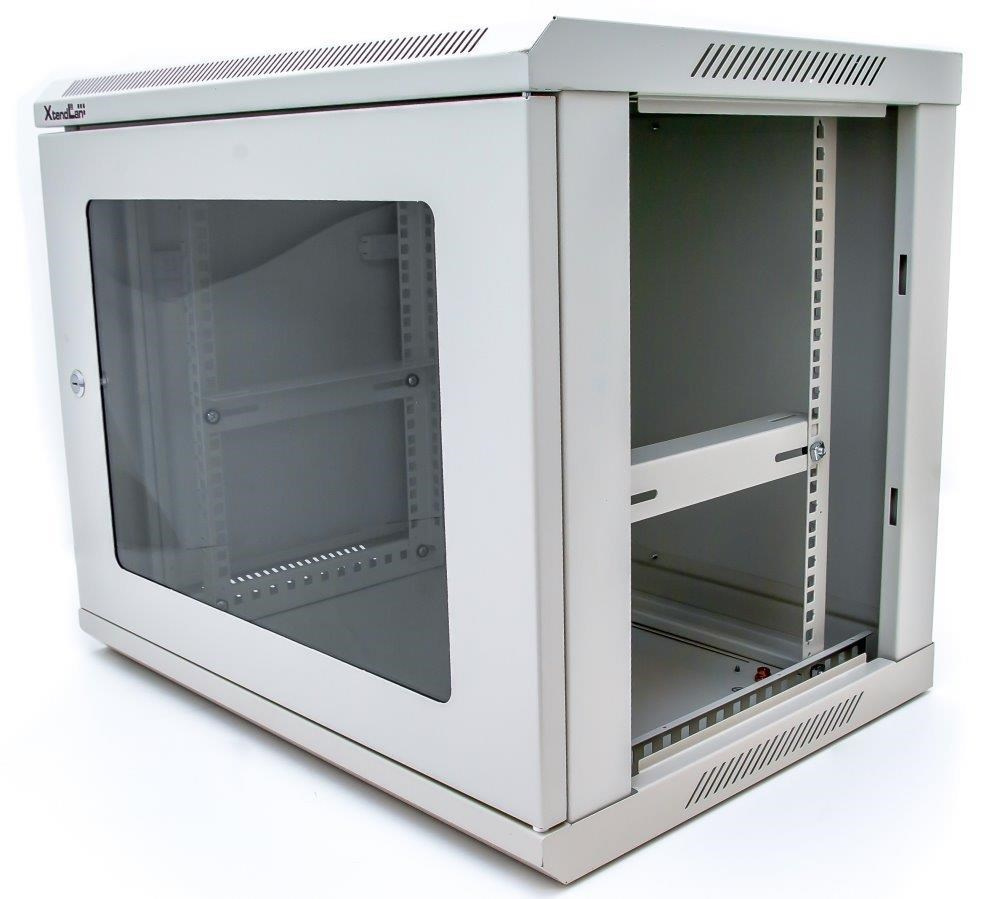 XtendLan 19" nástěnný rozvaděč 9U 600x450, nosnost 60 kg, skleněné kouřové dveře, svařovaný, šedý