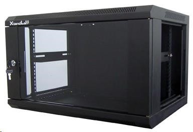XtendLan 19" nástěnný rozvaděč 9U 600x600, nosnost 60 kg, skleněné kouřové dveře, svařovaný, černý
