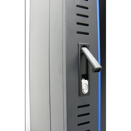 Rozvaděče jsou výborně řemeslně zpracovány. Vyrobeny jsou z válcované oceli, nosné části jsou z oceli tloušťky 2 mm, ostatní části z 1,5 mm oceli. Pevná konstrukce dovoluje statickou zátěž až 5800 kg. Uzamykatelné přední a zadní dveře, rukou uzavíratelné a volitelně uzamykatelné boční panely. Dodává se s nožičkami, kolečky a montážní sadou. Je možné přidat podstavec. Kolečka i nožičky lze nainstalovat současně a zajistit tak stabilní instalaci, kterou je možné v případě potřeby snadno přesouvat. Provedení: dveře - bezpečnostní sklo, uzamykatelné zádní kryt - plný, uzamykatelný boční kryt - plný, možno vybavit zámkem