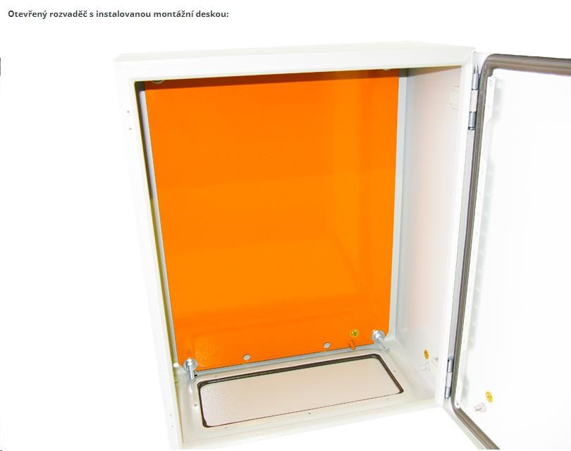 Univerzální rozvaděč, IP66, ocelový, šedý. Třívrstvá povrchová úprava (fosfátování, máčení v základním laku, práškový lak), zaměnitelné dveře, pevná konstrukce. Odnímatelný kryt kabelového průchodu. Rozvaděč je vyroben z válcované oceli o tloušťce 1,5 mm. Standardy: IEC60529, EN60529/10.91, GB4208-93 Provedení: dveře - plné, otevíratelné o 110 stupňů, montáž pravá nebo levá (uživatelsky zaměnitelné otevírání) zádní kryt - plný boční kryt - plný horní kryt - plný montážní deska: