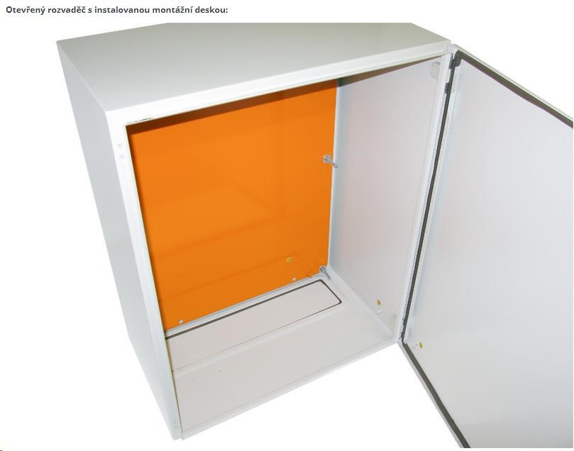 Univerzální rozvaděč, IP66, ocelový, šedý. Třívrstvá povrchová úprava (fosfátování, máčení v základním laku, práškový lak), zaměnitelné dveře, pevná konstrukce. Odnímatelný kryt kabelového průchodu. Rozvaděč je vyroben z válcované oceli o tloušťce 1,5 mm. Standardy: IEC60529, EN60529/10.91, GB4208-93 Provedení: dveře - plné, otevíratelné o 110 stupňů, montáž pravá nebo levá (uživatelsky zaměnitelné otevírání) zádní kryt - plný boční kryt - plný horní kryt - plný montážní deska: