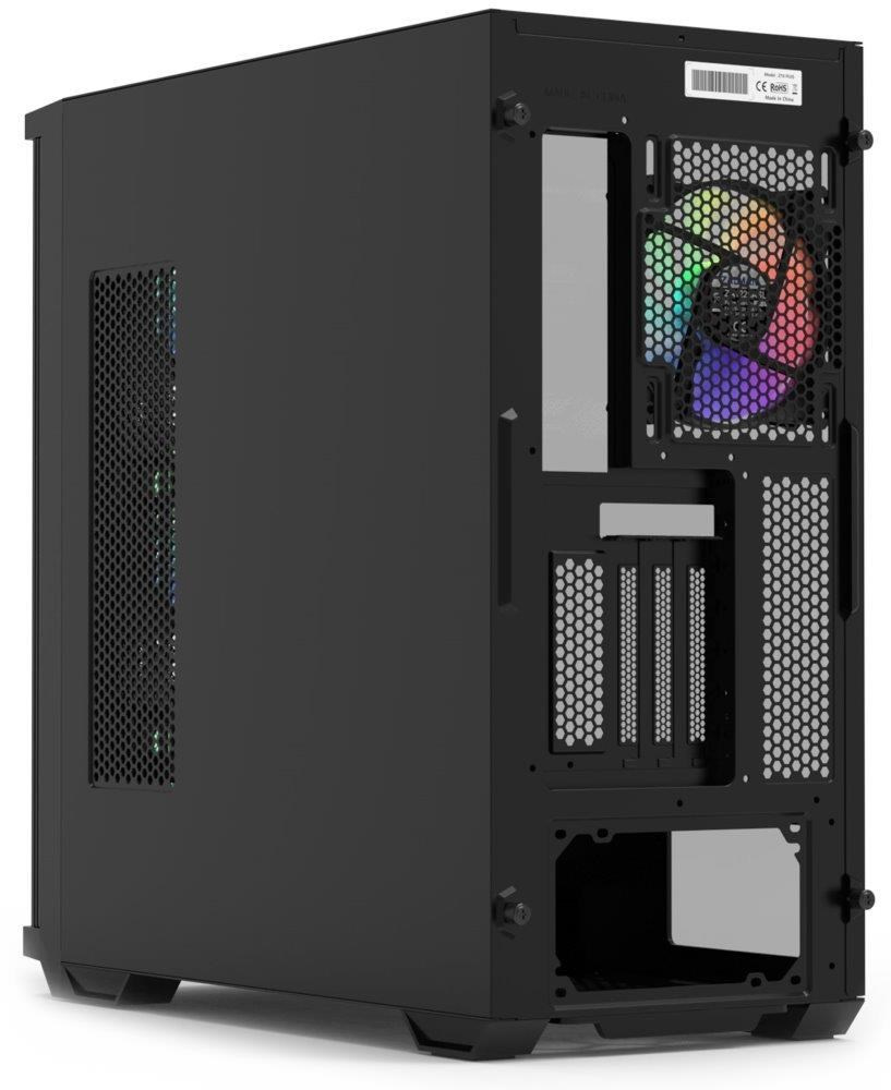 Počítačová skříň v provedení Middle tower. Na horním panelu jsou umístěny dva USB 3.0 porty, jeden USB 3.1 typ C port, sluchátkový výstup a vstup pro mikrofon. Skříň je osazena celkem čtyřmi ventilátory s ARGB podsvícením o velikosti 120 mm. Průhledná bočnice společně s perforovaným předním panelem zajišťuje vytříbený design. Perforovaný přední panel je navíc možné vyměnit za přiložené tvrzené sklo a nechat tak ještě více vyniknout stylové ARGB podsvícení předních ventilátorů. Důmyslné řešení umožňuje pohodlné umístění až 360 mm dlouhého výměníku vodního chlazení na přední či horní straně. Ve skříni je dostatek prostoru pro chladič CPU do výšky až 173 mm a grafickou kartu o délce až 395 mm. Součástí skříně je interní ARGB ovladač pro až 6 ventilátorů a sada prachových filtrů. Dodávána je bez zdroje.
